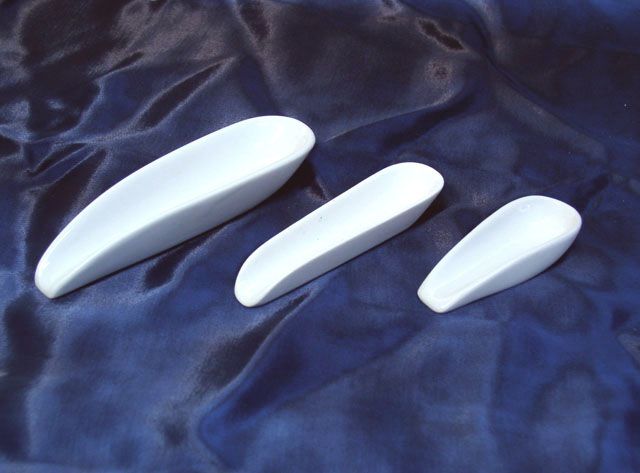 Porcelánból készült mázas bemérőcsónakok különféle méretekben.