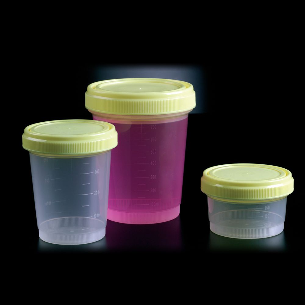 Szivárgásmentesen zárható, beosztással rendelkező polipropilén (PP) edények polietilén (PE) kupakokkal. Alkalmas folyadékok és alkoholok tárolására is.